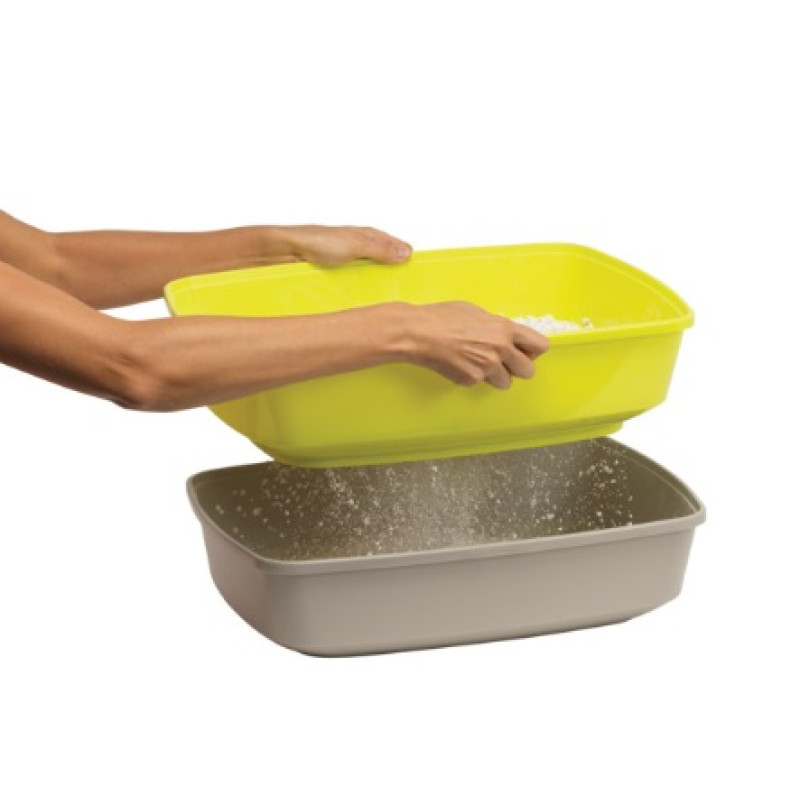 Jūsu iepirkumu grozs ir tukšs! Tualete ar restēm un dubultdibenu - tualetes tīrīšanai nav nepieciešama lāpstiņa. Paaugstinātās malas novērš pakaišu izkaisīšanos. Piemērota jebkuriem cementējošiem pakaišiem.