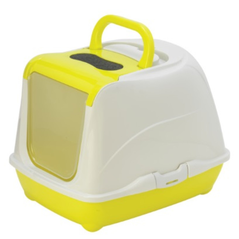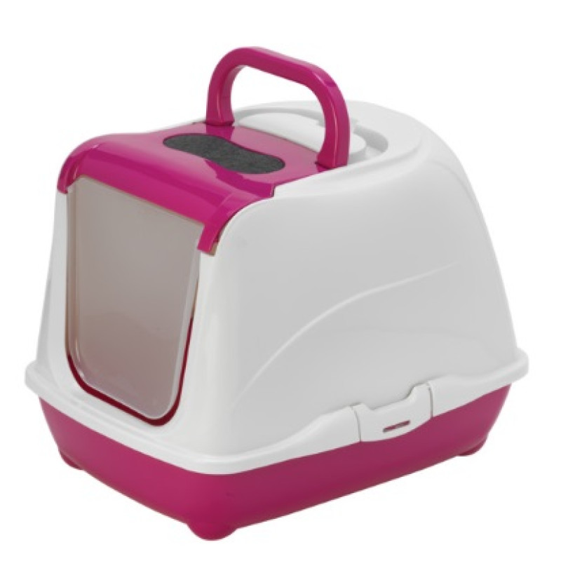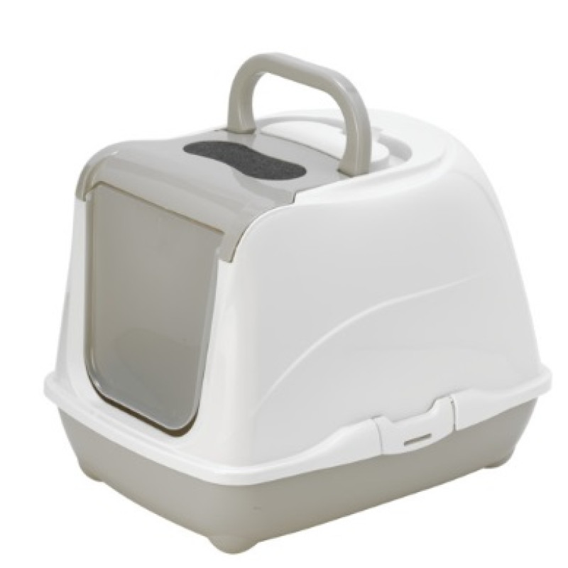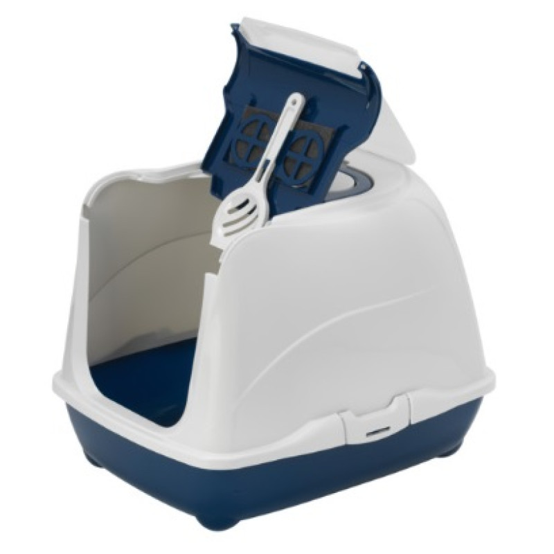 Slēgtā kaķu tualete ar rokturi un paceļamo jumtu ērtai tualetes tīrīšanai. Lāpstiņa un gaisa filtrs komplektā. Dažādas krāsas.