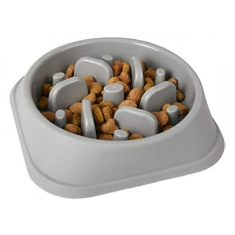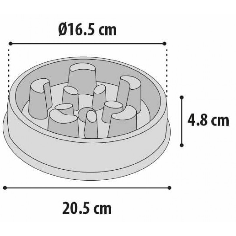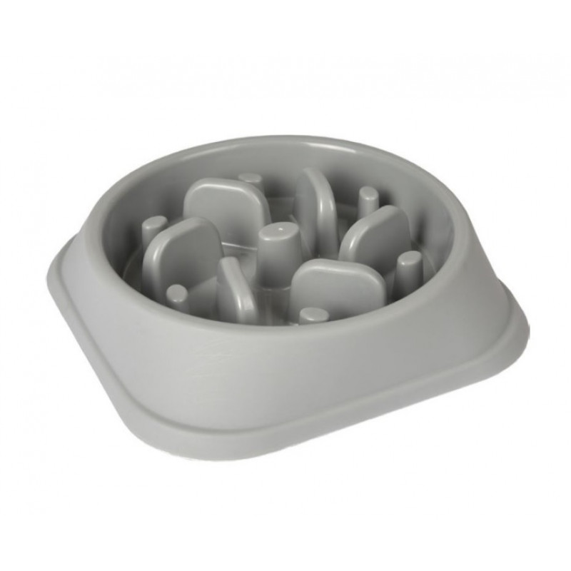 Plastmasas bļoda lēnākai ēšanai. Speciāla forma-labirints samazina ēšanas ātrumu, neļauj sunim aizrīties. Pretslīdēšanas gumijas.
