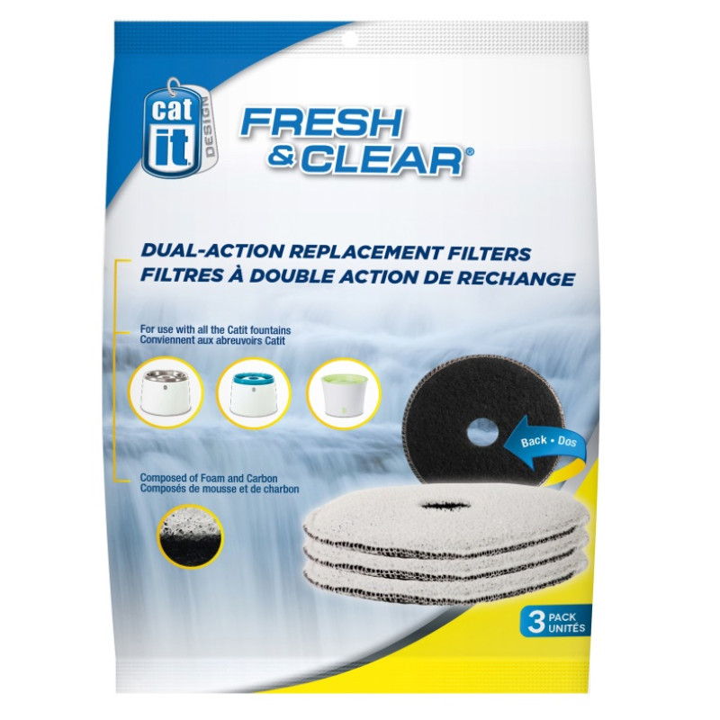 Kartridžs efektīvs līdz 4 nedēļām, atkarībā no ūdens kvalitātes. Piemērots modeļiem Hagen Catit Flower Fountain, Hagen Catit Fresh & Clear Fountain, Zeus Cascade Drinking Fountain.