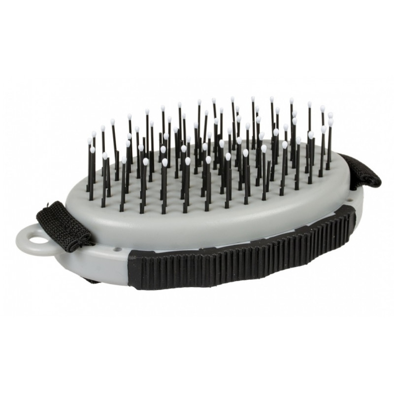 Birste ar metāla zobiņiem ar aizsargvāciņiem. Ērts rokturis. Lieliski piemērota savēlumu un izkritušo matiņu izķemmēšanai. Visiem kažokiem.