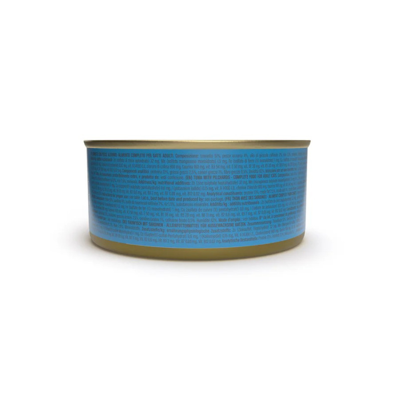 Izejvielas: tuncis 51%, sardīnes 4%, saulespuķu eļļa 2%, rīsi 1,5%, minerālvielas.