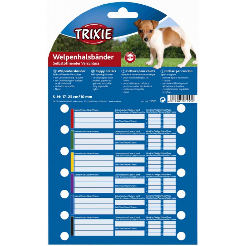 Jūsu iepirkumu grozs ir tukšs! Kaklasiksnu komplekts kucēniem. Komplektā ir 6 dažādas krāsas mazuļu ērtai apzīmēšanai – katram kucēnam savas krāsas kaklasiksna.