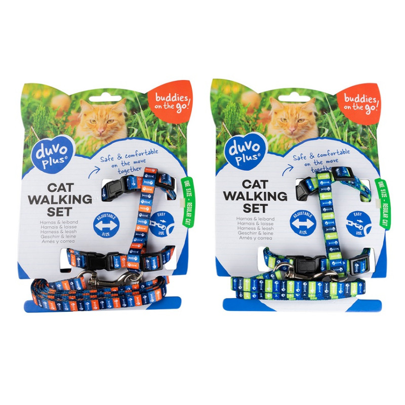 Duvo Plus Cat Harness Fish bones - krūšu siksna ar pavadu kaķiem, ar rakstu