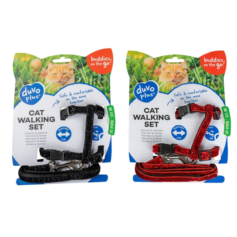Duvo Plus Cat Harness Glitter - krūšu siksna ar pavadu kaķiem, ar spīdumu