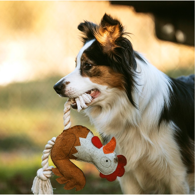 Īpaši izturīga eko ādas rotaļlieta ar kokvilnas un kaņepju striķiem un pīkstuli.