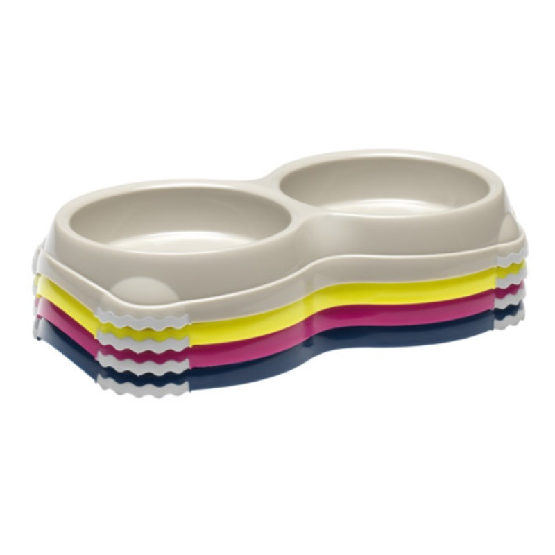 Dubultā seklā bļoda ar pretslīddēšanās gumijām.