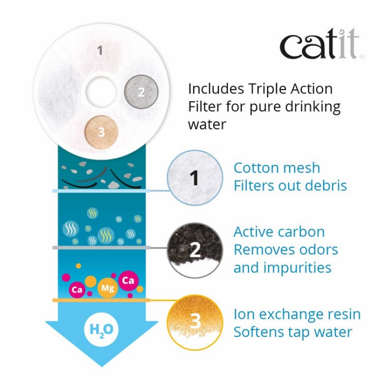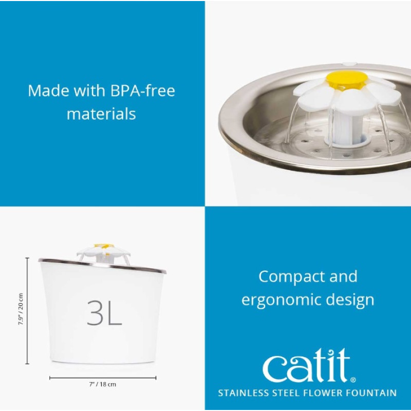 Ļoti stabīla, droša, pilnībā izjaucama konstrukcija ar atvienojamu vadu; to ir ērti mazgāt un kopt. Atkarībā no dzīvnieka vēlmēm, var izvēlēties vienu no trīm ūdens plūsmu veidiem. Modelis ir piemērots kaķiem, kaķēniem, kucēniem, mazo šķirņu suņiem, seskiem.