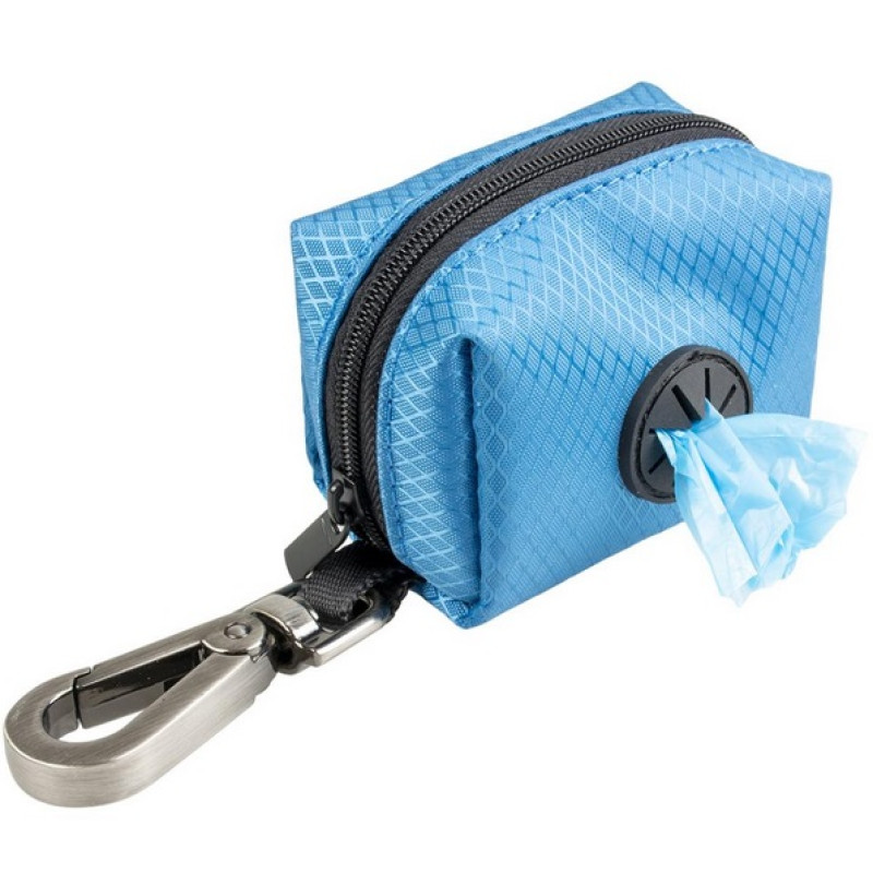 Jūsu iepirkumu grozs ir tukšs! Neilona somiņa maisiņiem suņu ekskrementu savākšanai. Somiņas aizmugurē ir divas Velcro aizdares piestiprināšanai pie pavadas. Somiņai ir arī izturīgs metāla karabīns somas pieāķēšanai pie siksnas, kuru turklāt var izmatot kā tūrētāju piepildīta maisiņa nešanai līdz atkritumu tvertnei. Maisiņu ruļļu ievietošanai somā paredzēta ravējslēdzēja aizdare virspusē. Somiņai ir ērta maisiņu padošanas atvere.