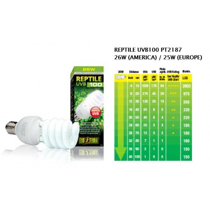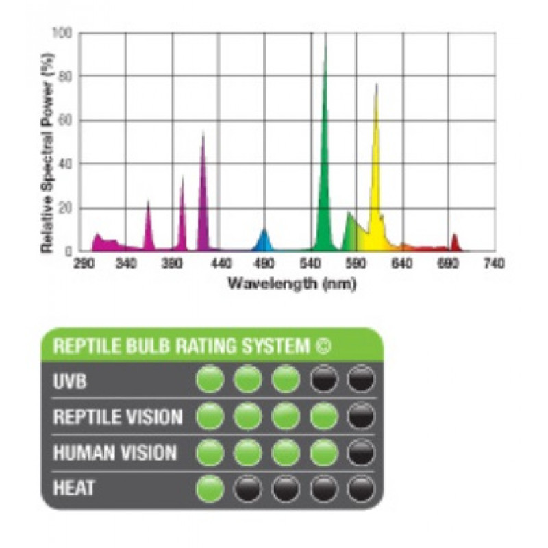 Jūsu iepirkumu grozs ir tukšs! Spuldze visiem tropu un subtropu rāpuļiem, tā izstaro optimālu UVB staru daudzumu, līdzīgu tam, kāds ir ēnainos lietus mežos. Spuldze nodrošina pareizo UVB staru daudzumu optimālam kalcija metabolismam un UVA starus apetītei, aktivitātei un reproduktīvajai uzvedībai. Spuldze saglabā savu efektivitāti augstumā līdz 40cm. Lai palielinātu dabiskās saules gaismas daudzumu, šo spuldzi ieteicams kombinēt ar Exo Terra Reptile Vision.