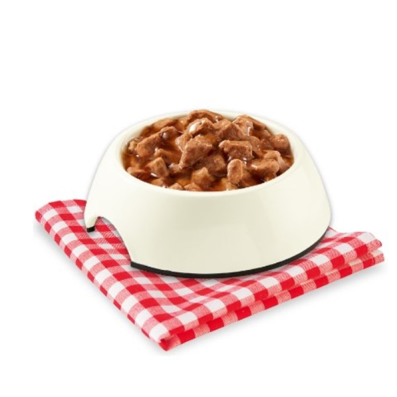 Stuzzy Dog Bocconcini aromātiskie gaļas gabaliņi mērcē vai želejā ir pilnvērtīgā un veselīga pārtika visiem suņiem. Šīs ēdiens tiek tvaicēts, un tāda maigā apstrāde ne tikai saglabā visas gaļā esošās barības vielas, bet arī padara pārtiku par ļoti viegli asimilējamu. Dažādas ēdienu garšas ir ārkārtīgi apetelīgas un pievilinošas pat visizvelīgākiem suņiem.
