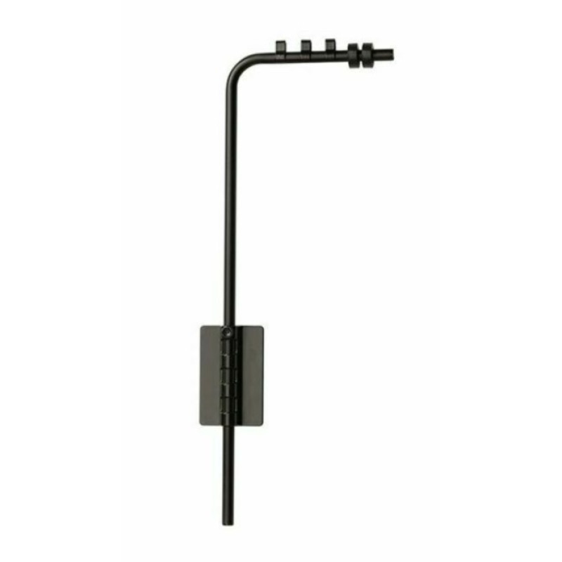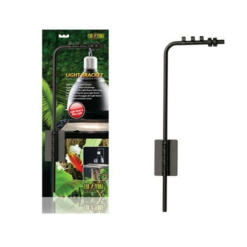 Gaismekļa turētājs. Paredzēts kupolveidīgo un stiepļu gaismekļu uzstādīšanai virs terārijiem un putnu voljēriem/būriem. Turētāja garumu var viegli regulēt, izmantojot īpašus gumijas fiksējošus gredzenus. Tas ļauj novietot gaismekli jebkurā ērtā augstumā. Turētājs stiprinās pie terārija / būra / sienas gludās virsmas ar drošu pamatni uz pašlīmējošās bāzes.