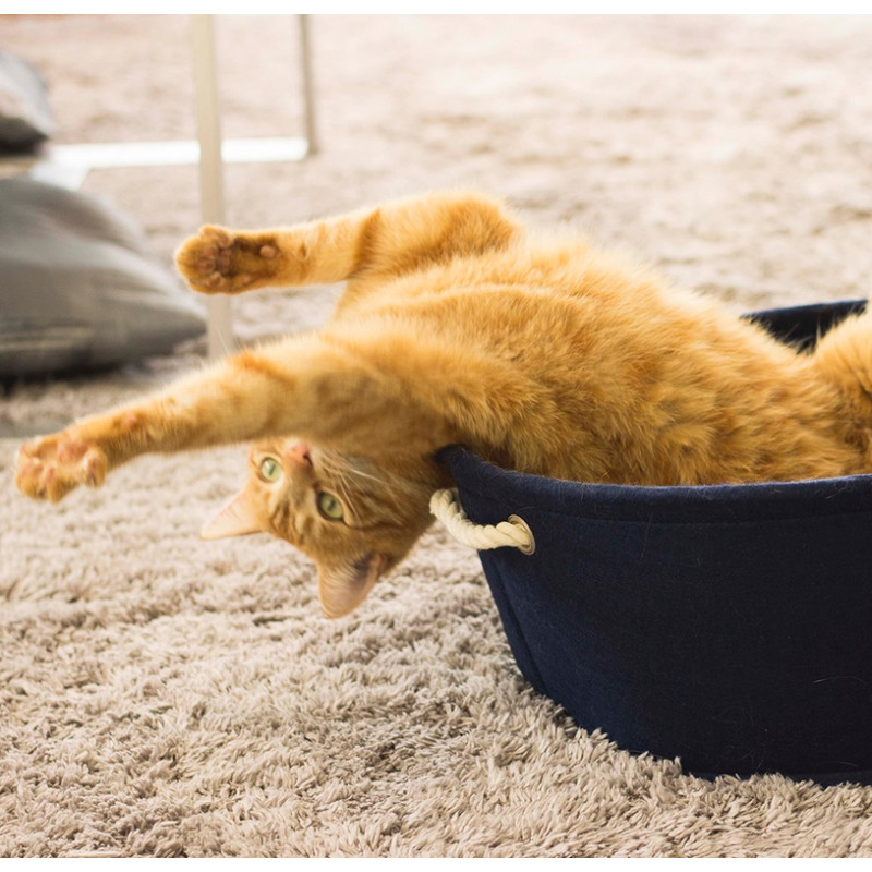 Jūsu iepirkumu grozs ir tukšs! Filca gultiņa, pateicoties neparastajam dizainam, lieliski izskatīsies Jūsu mājā. Gultiņa ir izgatavota no nodilumizturīgiem materiāliem: izturīga bieza filca un rokturiem no dabīgas kokvilnas virves. Mīksts plīša spilvens padarīs gulēšanu tajā vēl ērtāku.
