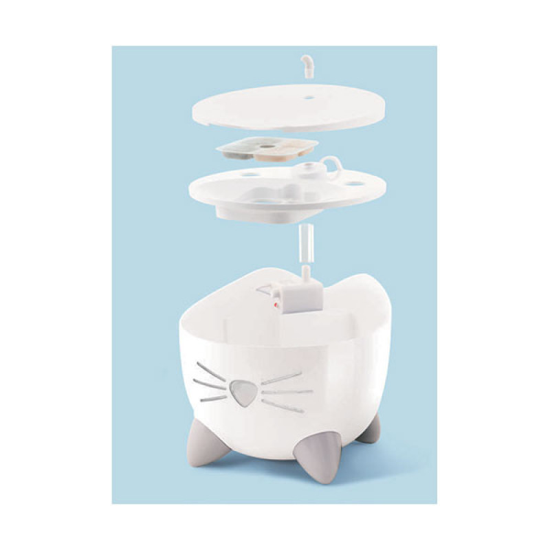 Catit PIXI strūklakai ir trīskāršas darbības filtrs, kas nepārtraukti attīra dzeramo ūdeni. Tas aiztur netīrumus, palīdz likvidēt smakas un piemaisījumus un pat mīkstina ūdeni, samazinot magnija un kalcija līmeni. Liels šo minerālvielu daudzums var izraisīt to uzkrāšanos Jūsu mājdzīvnieka apakšējos urīnceļos un izraisīt urīnceļu slimības, kas ir izplatīta kaķu veselības problēma.