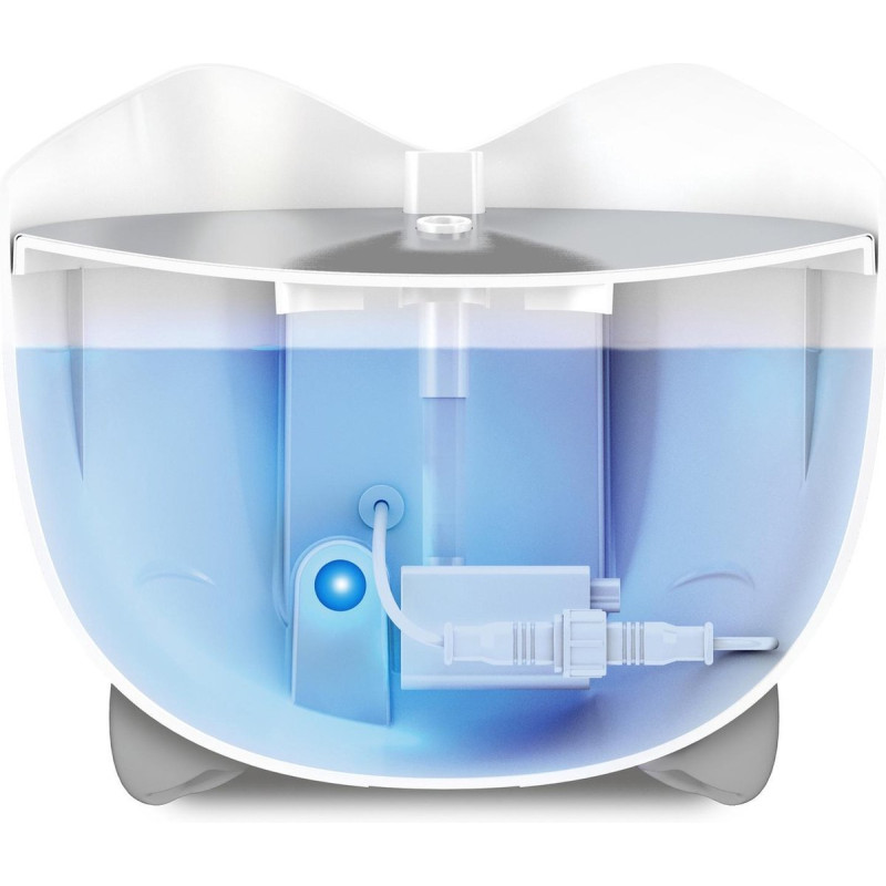 Tā kā bļodā vienmēr ir ūdens, Jūsu kaķis varēs dzert, kad vien vēlas, pat ja dzirdinātava ir izslēgta. Blakus bļodai ir pilienu savākšanas zona, kas palīdz nejaušiem pilieniem noplūst atpakaļ.