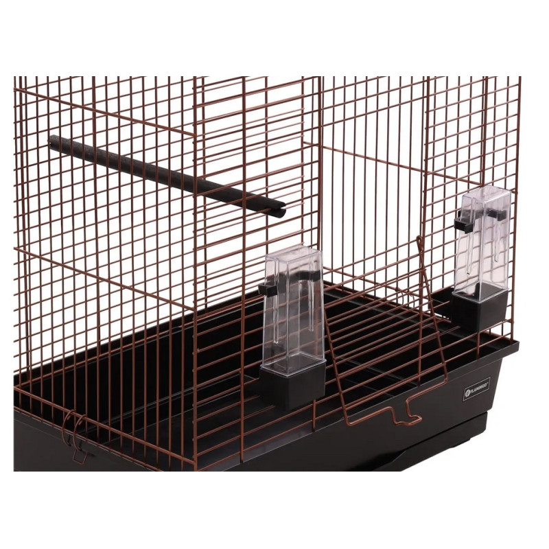 Būris vidējiem papagaiļiem. Platas sānu un jumta durtiņas. Komplektā 3 laktas un 2 barotavas.
