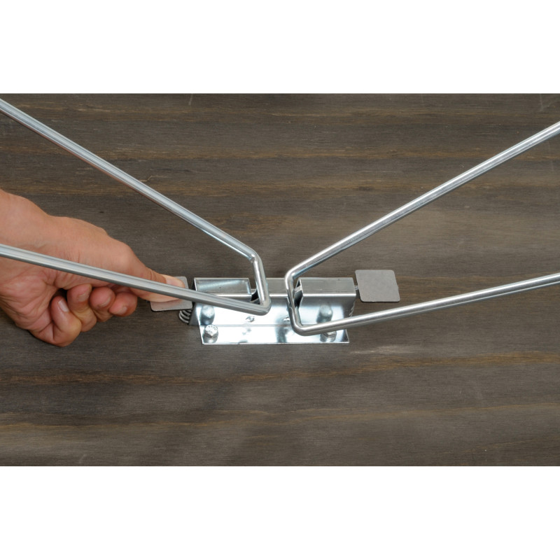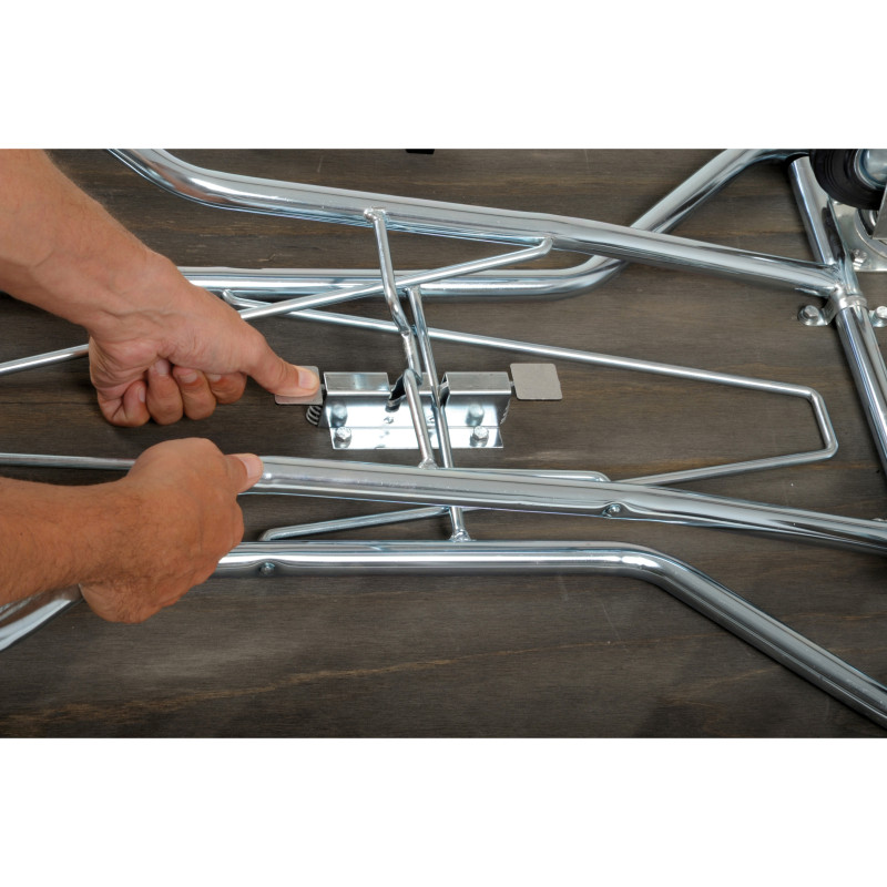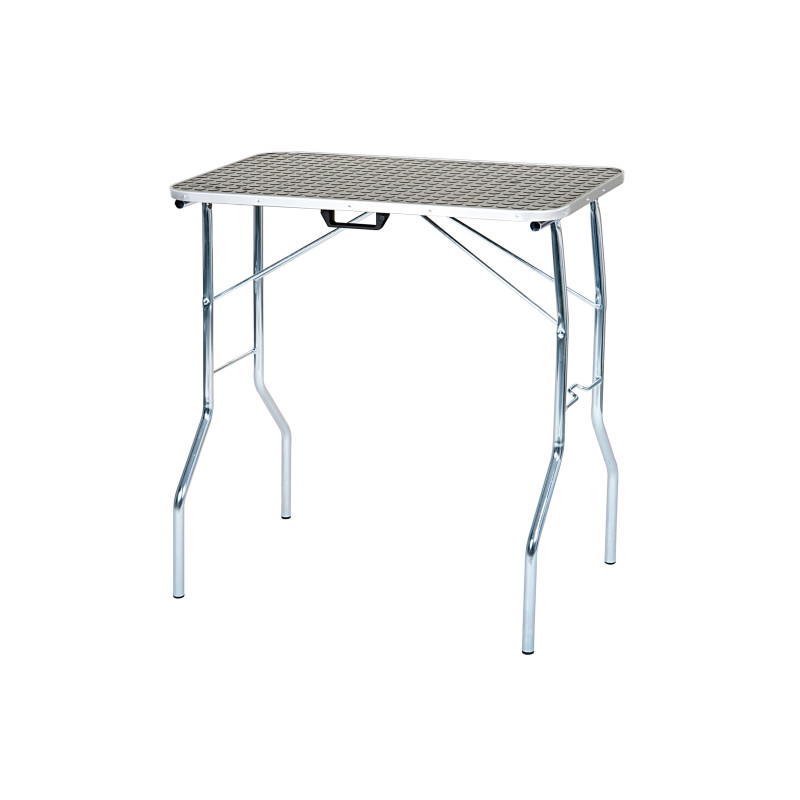 Jūsu iepirkumu grozs ir tukšs! Pārnēsājams grūminga/ izstāžu galds ar augstkvalitātīvu koka virsmu un hromētām tērauda kājām. Viegli paceļams un salokāms, pateicoties "fiksatora" sistēmai, kas notur kājas vietā. Galda virsmai ir melns gumijas pārklājums un anodēta alumīnija apdare.