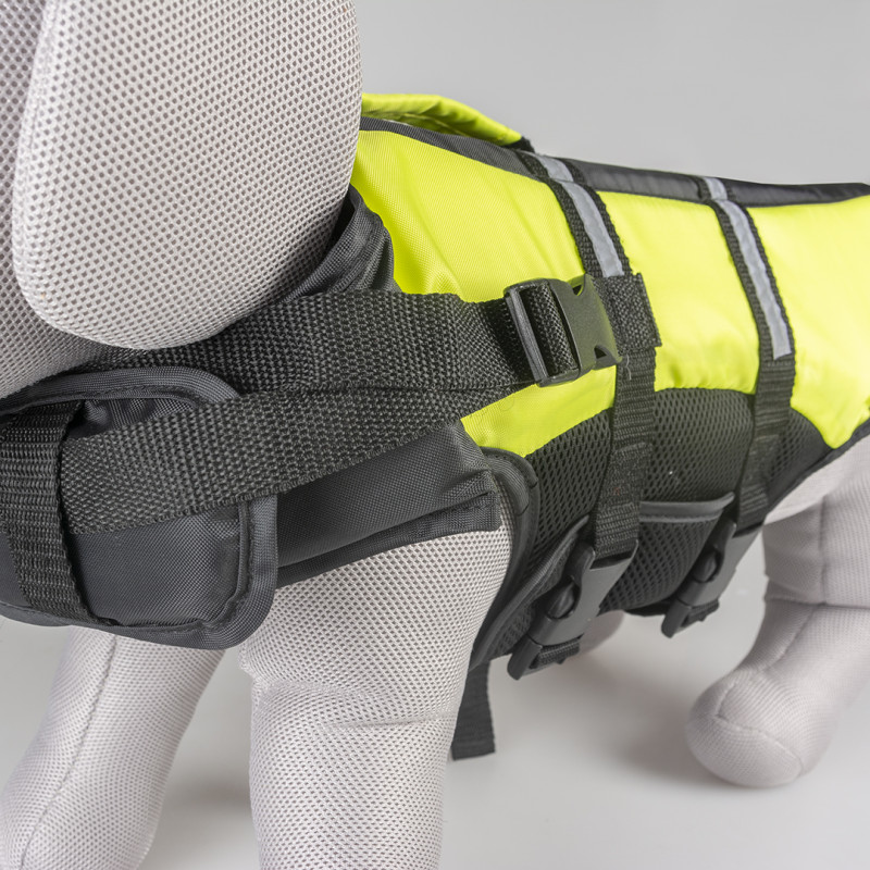 Jūsu iepirkumu grozs ir tukšs! Ar šo glābšanas vesti Jūsu suns var droši peldēties vai pievienoties Jums laivu braucienā. Pateicoties dzeltenajai krāsai un atstarojošām svītrām, glābšanas veste ir labi saskatama no attāluma, kas ļauj ātri atrast suni ūdenī. Uz vestes muguras ir rokturis, lai Jūs varētu viegli izcelt suni no ūdens. Velcro aizdares un regulējamas siksnas zem vēdera un uz krūtīm nodrošina labu vestes piegulšanos suņa figūrai.