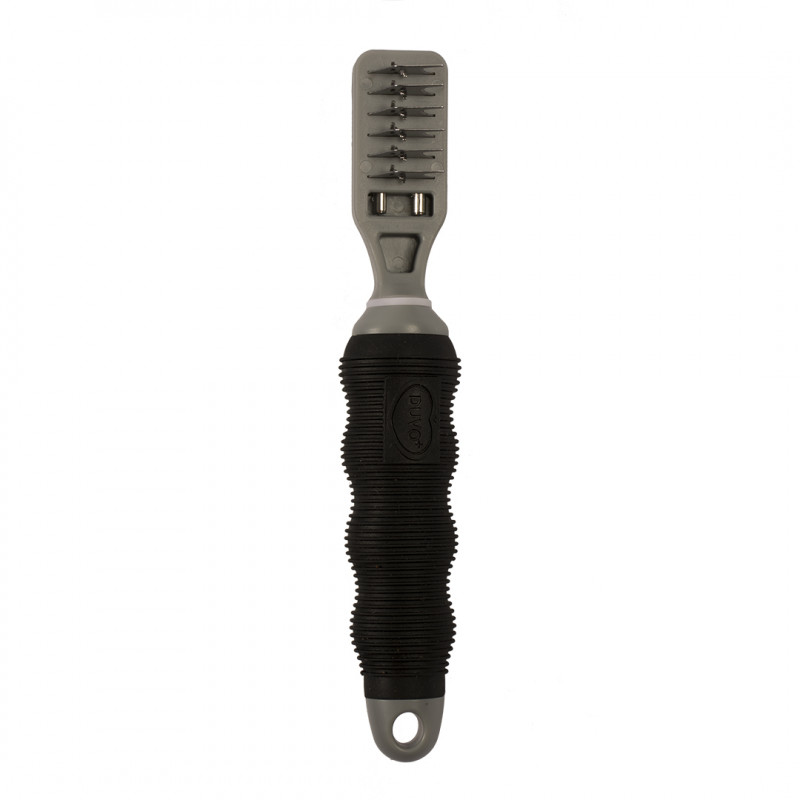 Jūsu iepirkumu grozs ir tukšs! Ar šīs ķemmes palīdzību Jūs varēsiet ātri un precīzi atbrīvoties no kaitinošiem savēlumiem kažokā. Ķemmes izliektie asmeņi ir pilnīgi droši un neiegriezīs ādā. Lieliski piemērota dzīvniekiem ar biezu, garu vai cietu kažoku.