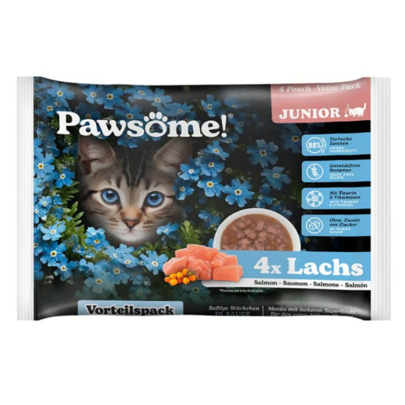 Sastāvs: gaļa un gaļas produkti (73.5% katrā gabaliņā, no kuriem vista* 14%), zivis un zivju produkti (lasis* 14.5% katrā gabaliņā), minerāli, līnsēklu eļļa 1%, zirņu ciete, zirņu proteīns, cigoriņu inulīns 0.4%, lignocelluloze, 0.1% smiltsērkšķis. *Kopējais gabaliņu saturs produktā 34.5%.