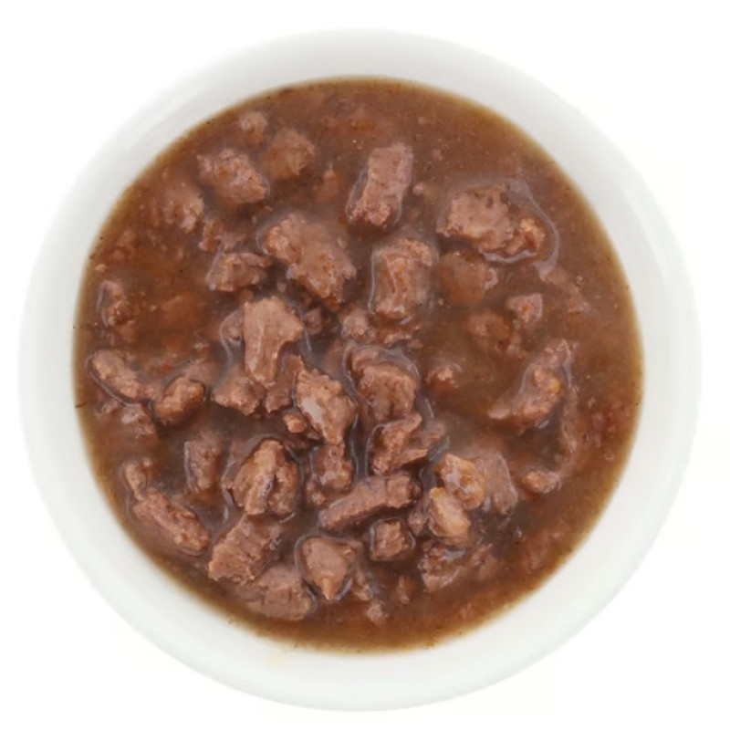 Premium kvalitātes mitrā pārtika kaķiem – gaļas gabaliņi mērcē.