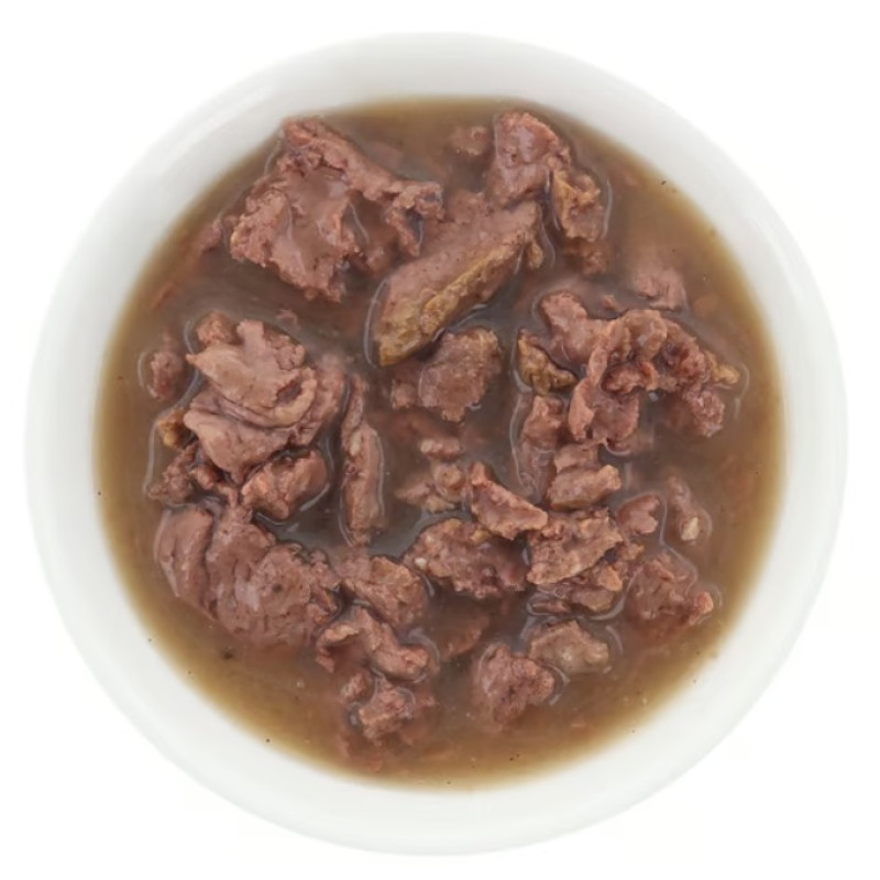 Premium kvalitātes mitrā pārtika kaķiem – gaļas gabaliņi mērcē.