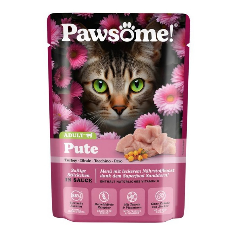 Sastāvs: gaļa un gaļas produkti (88% katrā gabaliņā, no kuriem tītars* 40.6%), minerāli, zirņu ciete, zirņu proteīns, līnsēklu eļļa 0.5%, cigoriņu inulīns 0.4%, lignocelluloze, 0.05% smiltērkšķis. *Kopējais gabaliņu saturs produktā 34.5%.