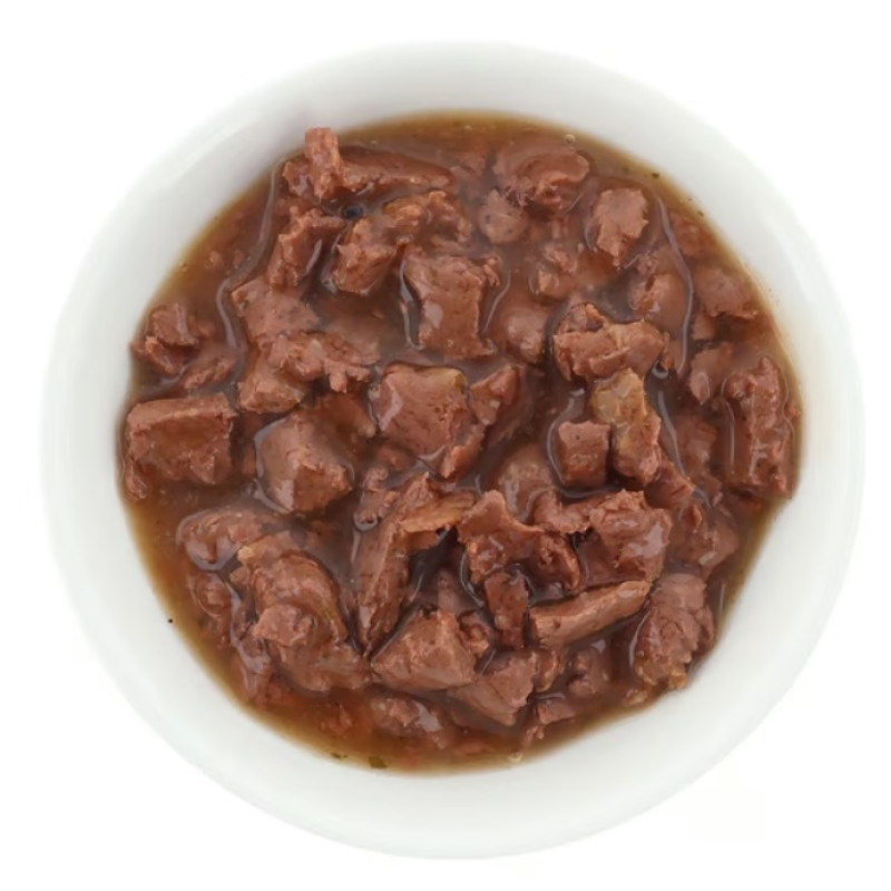 Premium kvalitātes mitrā pārtika kaķiem – gaļas gabaliņi mērcē.