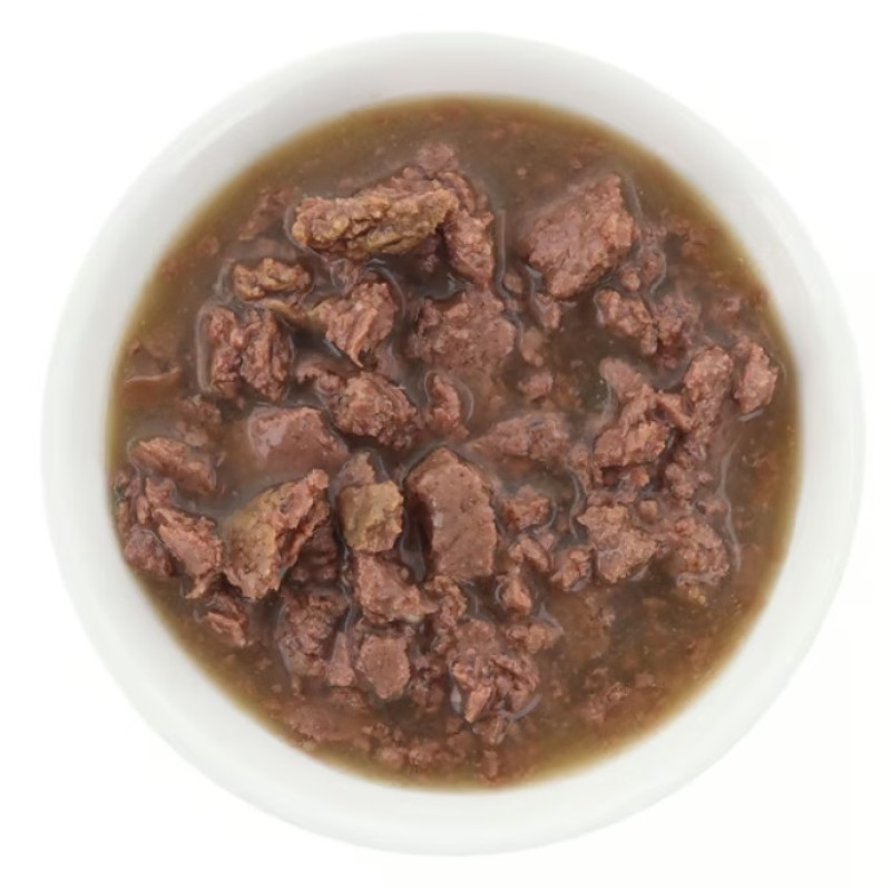 Premium kvalitātes mitrā pārtika kaķiem – gaļas gabaliņi mērcē.