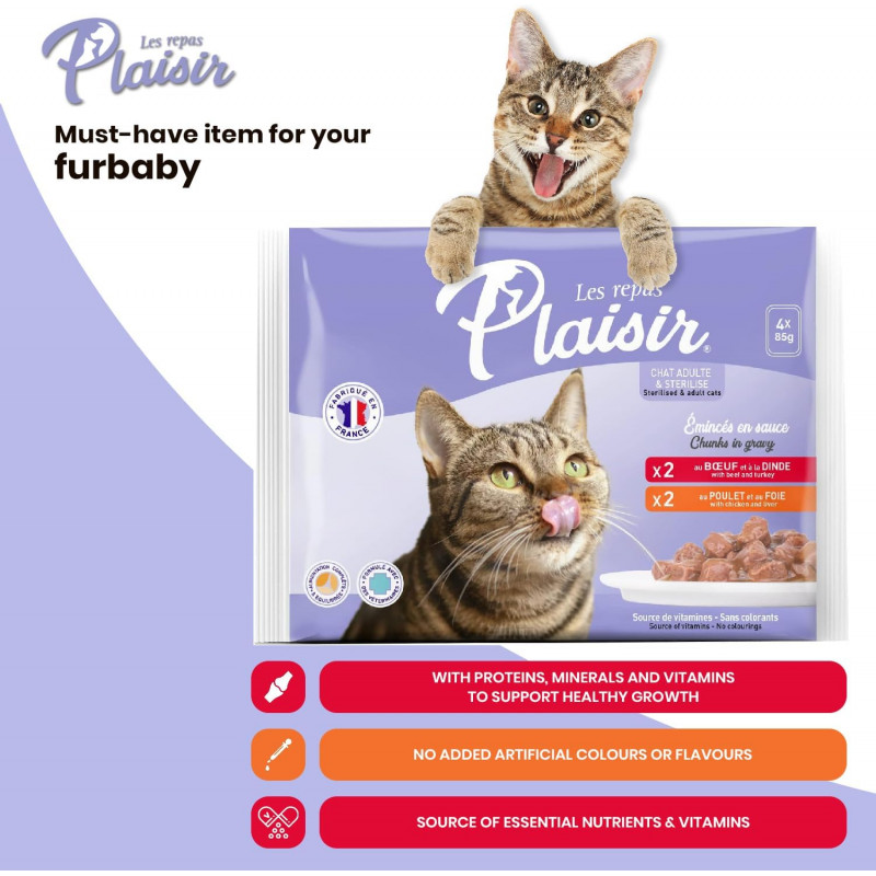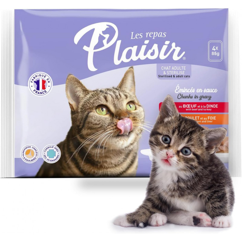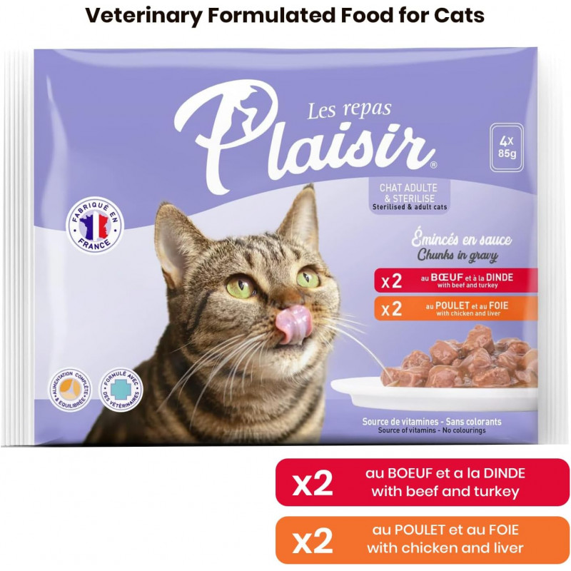 Gaļas gabaliņi mērcē pieaugušiem un/vai sterilizētiem kaķiem.