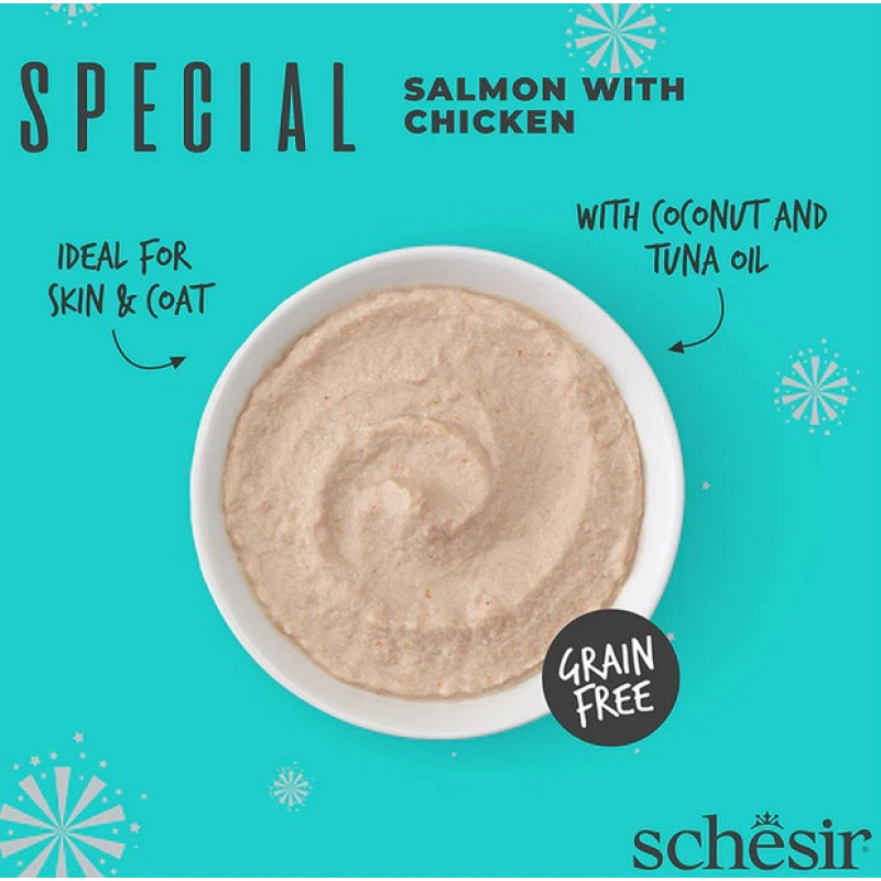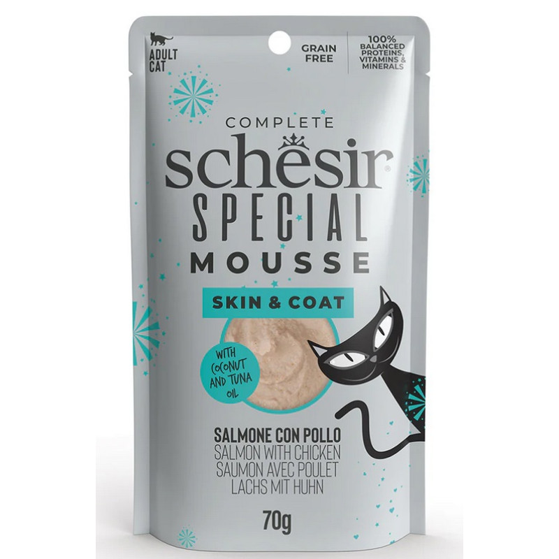 Mīksts un samtains uzputenis ir sakults no īstas vistas gaļas un laša, un bagātināts ar kokosriekstu un tunzivju eļļām.