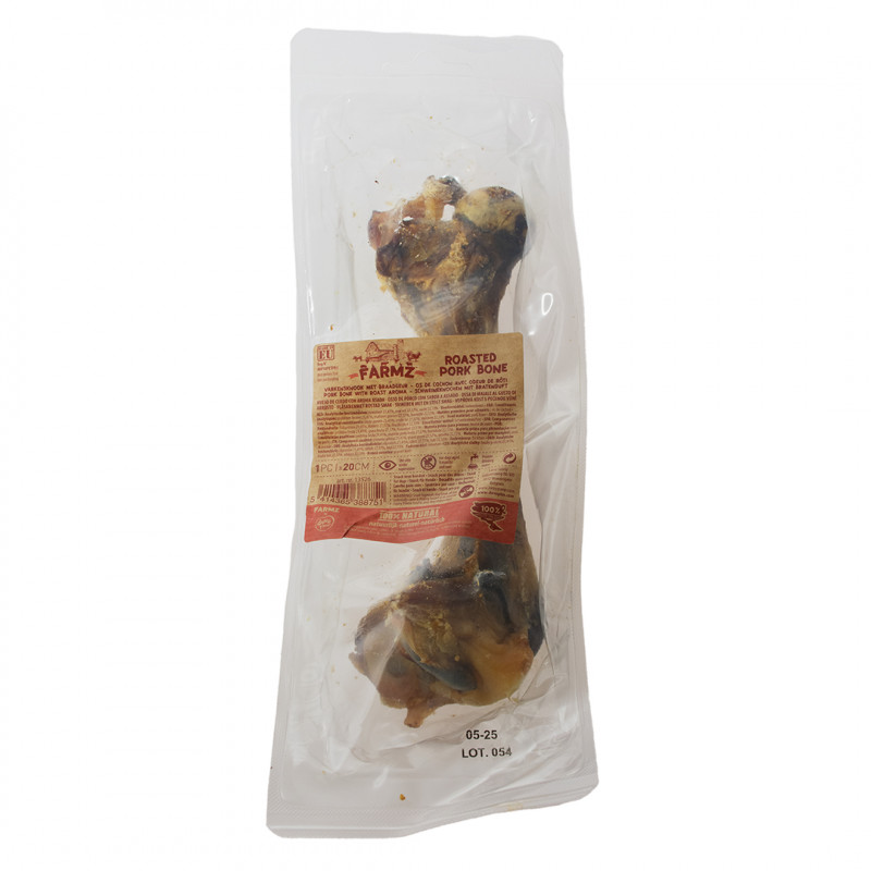 Grauzdēts cūkas kauls vakuuma iepakojumā. Bez krāsvielām, konservētājiem vai aromatizētājiem.