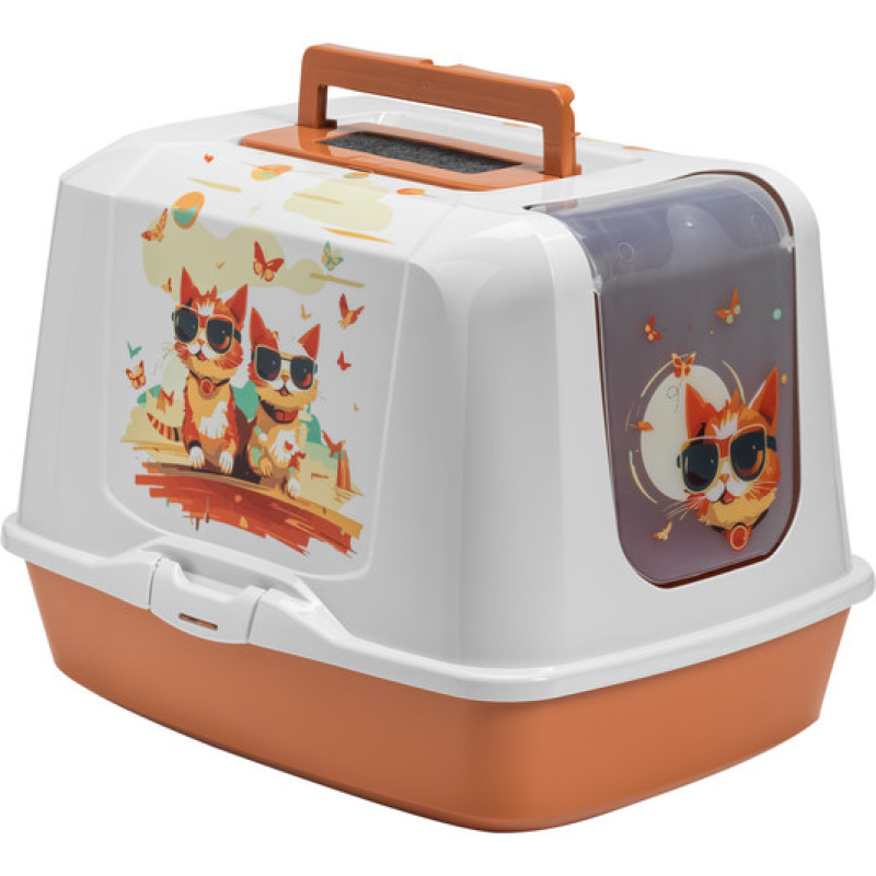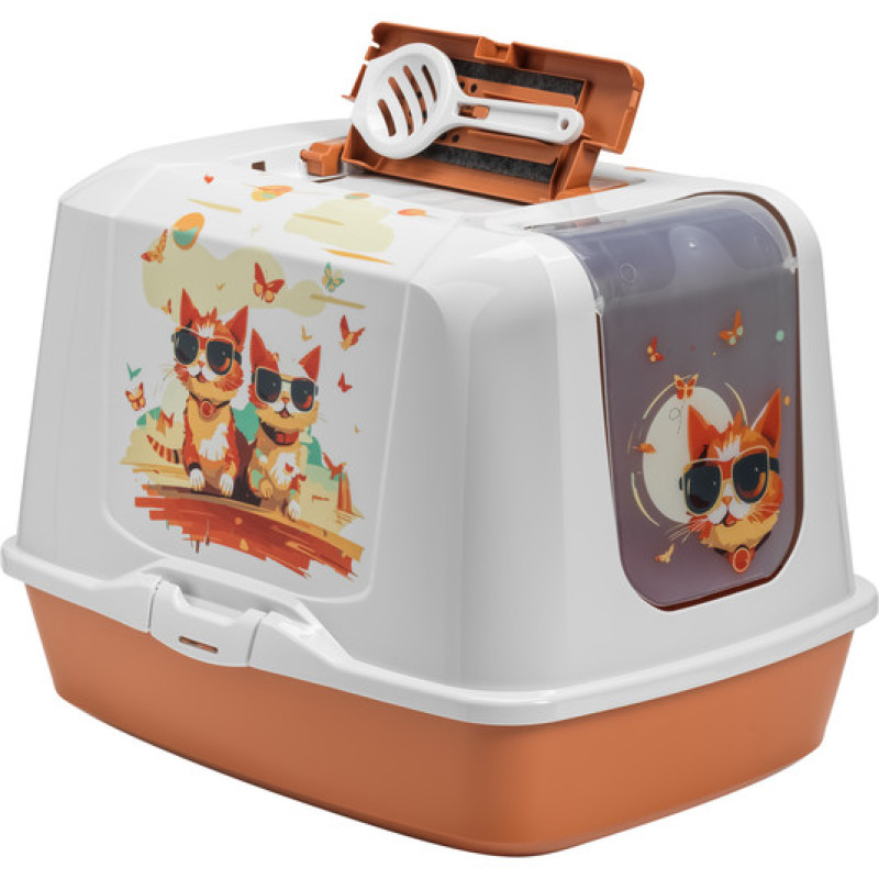 Premium kvalitātes slēgtā tualete kaķiem. Zīmējums ir drošs pret noberzumiem un UV stariem, neizbālē un nenāk nost. Ļoti kvalitatīva plastmasa, ilgmūžīga un viegli kopjama. Lāpstiņa un gaisa filtrs komplektā.