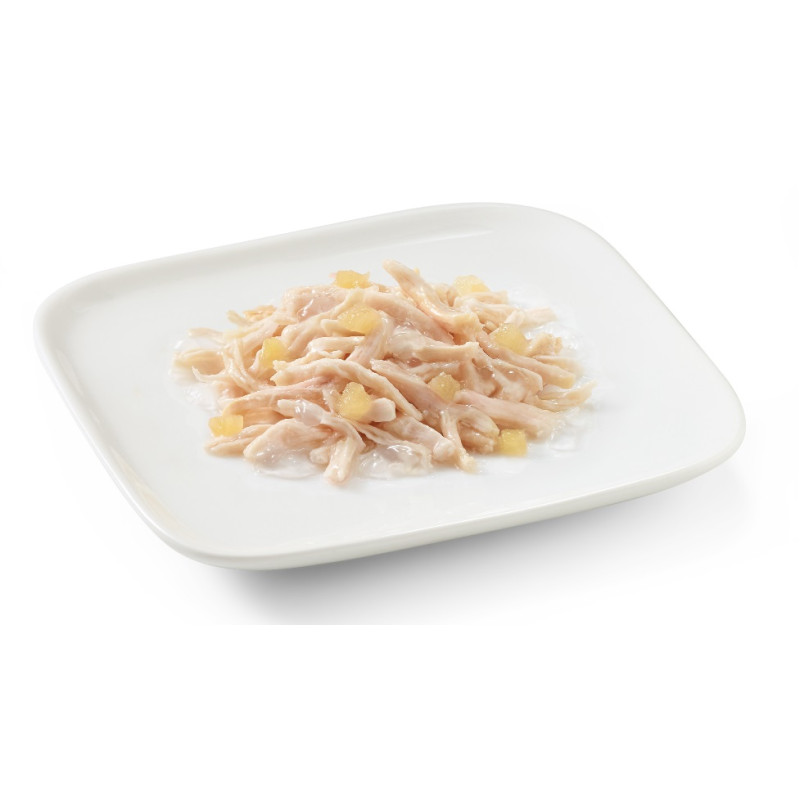 Izejvielas: vistas fileja 40%, ābols 4%, rīsi 2%.