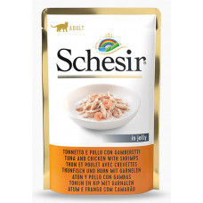 Schesir Cat Tuna with Shrimps in Jelly, 85g - pilnvērtīgā barība - tuncis un garneles želejā